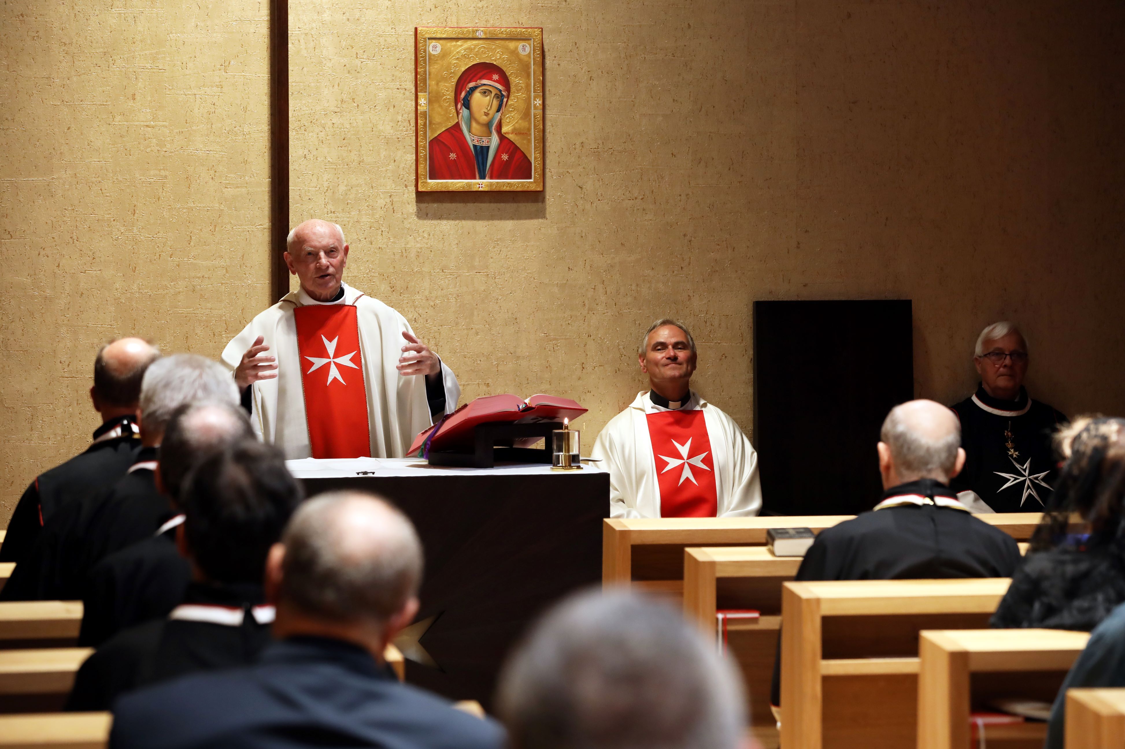 The Association celebrated the Diamond Jubilee Mass of Father Imre Kozma, Conventual Chaplain Grand Cross ad honorem, at the Thursday Mass on June 15, in the presence of many members of the Order and guests. After the Holy Mass, which Father Imre concelebrated with Fr. Gábor Jeney, leader of the South-East region of MMSZ, a reception was held in the garden, during which President Kristóf Szabadhegÿ congratulated Father Imre, and read out a greeting by Deputy Prime Minister Zsolt Semjén. He gifted Father Kozma, on behalf of the Order, with a copy of the icon of Our Lady of Filermo that hangs in the chapel of the Hungarian Association.