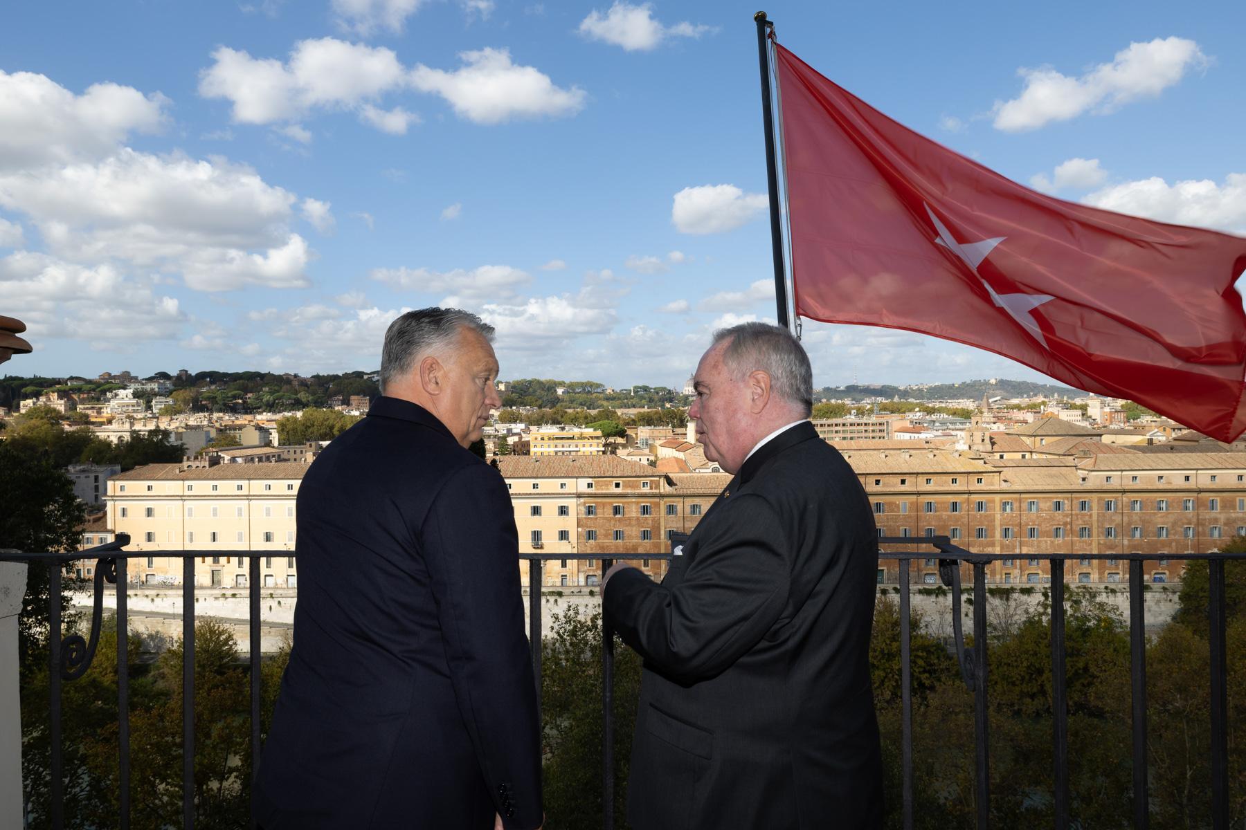 Róma, október 27. Orbán Viktort és Semjén Zsoltot Fra' John Timothy Dunlap nagymester fogadta a Rend római központjában. Az ukrajnai béke lehetőségeiről, valamint a gázai tűzszünet fenntartásáról egyeztetettek egymással.